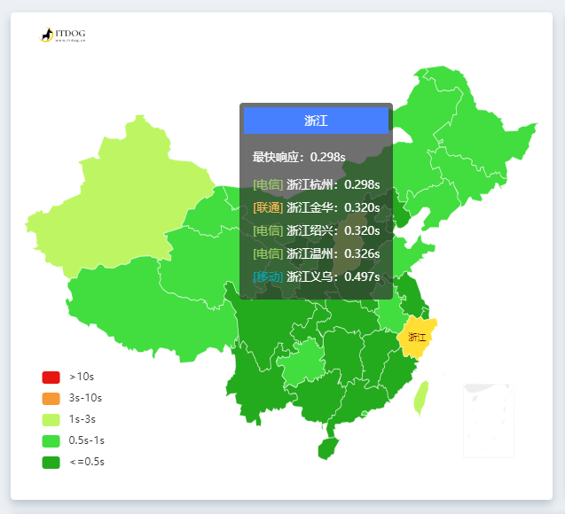 由于移动云(ecloud.10086.cn)内部维护的黑名单系统中,被拉黑的IP越来越多,逐渐失去网络监测的作用,现ITDOG已下架所有移动云的监测点,并用同地点移动线路节点替换,不会再出现个别IP的移动线路测试结果与其他平台移动线路测试结果不一的情况;另外,根据用户的反馈和建议,单次测试的结果地图中,鼠标放置于区块后将显示此区块所有的监测点记录,而不是像之前一样只显示一个记录,同时还可以点击地区区块,快速筛选出指定区块的测试结果;